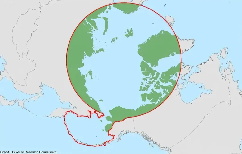 La definición más tradicional es la astronómica, marcada por el Círculo Polar Ártico (aproximadamente 66° 33′ N). Esta línea delimita el área donde ocurre el solsticio de verano y la noche polar.